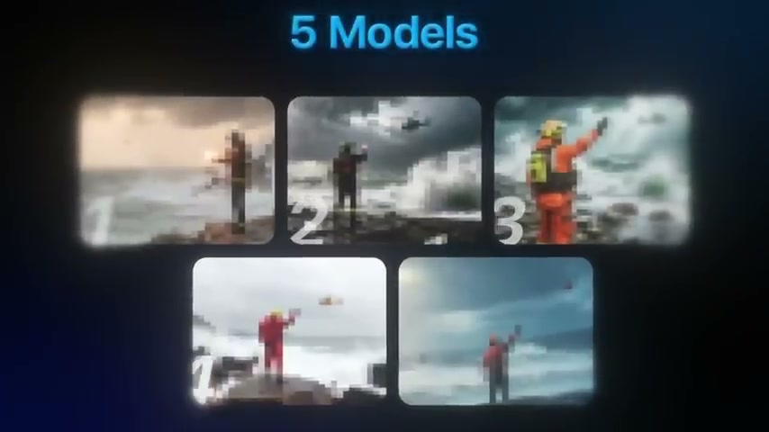 I generated a stormy rescue scene, then uploaded the result and typed "turn the man so that his face is visible." That's it. No complex prompt engineering. Seconds later, the person was realistically rotated toward the camera — feet, body position, everything looked natural and consistent with how someone would actually turn around. No weird morphing, no artifacts.